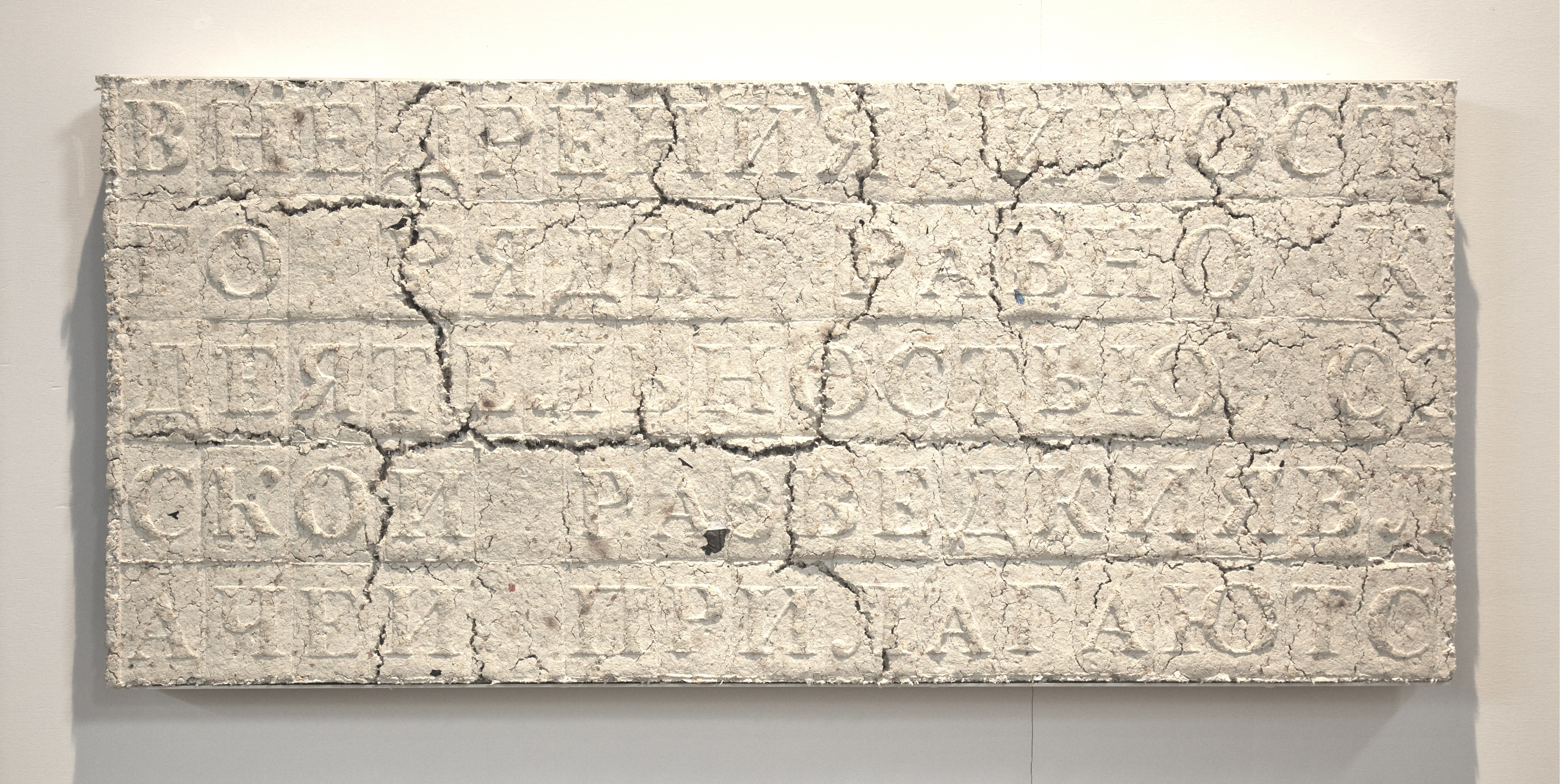Title: Covert Obsolescence, The Listening Post, 1993 Location: Studio installation Materials: Pulped C.I.A. documents, copper screen Size: 9'x15'x15'